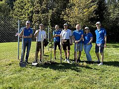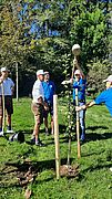 Einige Mitglieder des Skiklubs trafen sich noch vor dem Umzug des Bezirksmusikfestes und setzten am Trendsportzentrum Nesselwang einen Apfelbaum in die Erde.