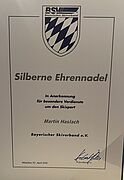 Martin Haslach, 1. Vorstand, wurde im Rahmen der Jahreshauptversammlung vom Bayerischen Skiverband mit der silbernen Ehrennadel ausgezeichnet. Überreicht wurde die Auszeichung von Herbert John, Präsident des Bayerischen Skiverbandes e.V.